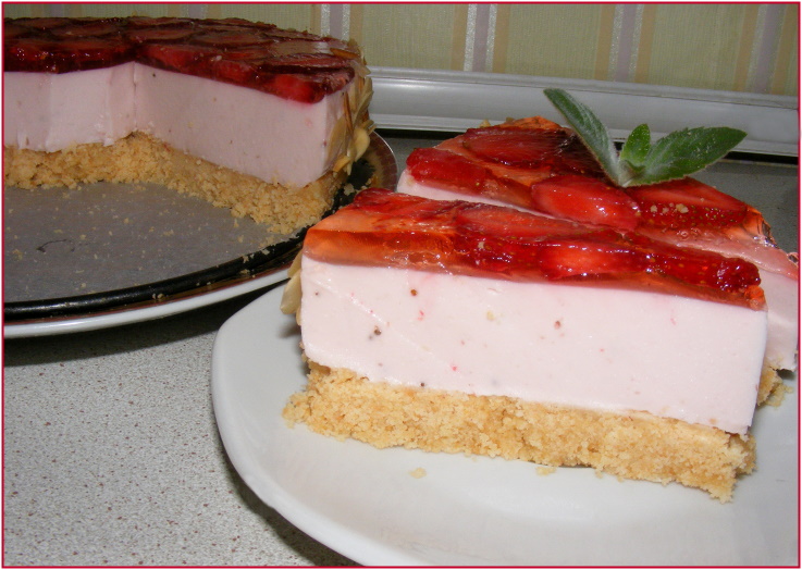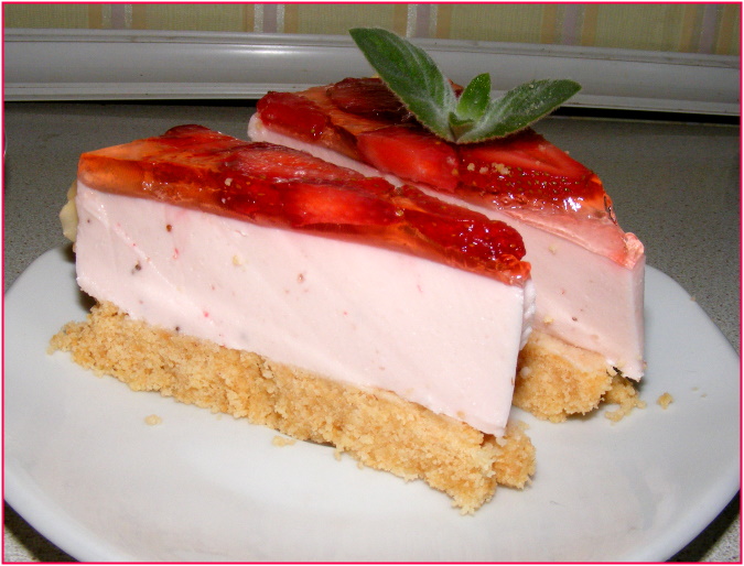 Начинается сезон ароматной клубники и так хочется приготовить с ней что-то вкусненькое,легкое и сладенькое.Вот пришла в голову мысль о чизкейке.Делала раньше чизкейки с разными наполнителями,правда выпекала в духовке,в этот раз сделала с желатином.Получился очень вкусный,легкий десерт-тортик.Рецепт не нов,но у меня свой вариант приготовления