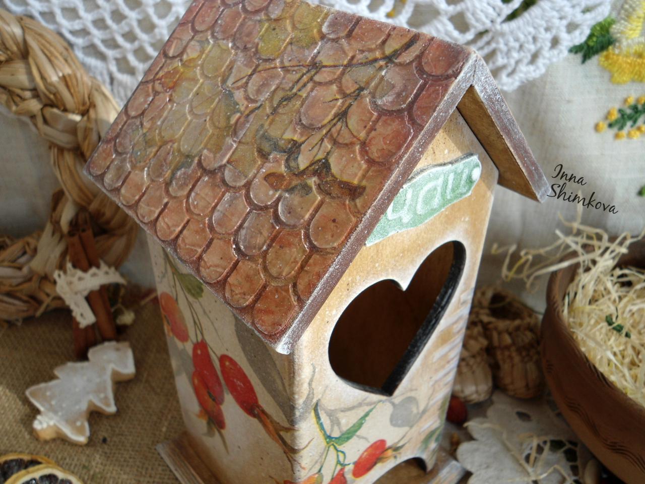Чайный домик "Поздний шиповник". С наступлением холодов всё чаще собираемся за столом попить вкусный ароматный чай. И вот такой домик для чайных пакетиков украсит не только Ваше чаепитие, но и кухню , создаст уют и поднимет настроение. Будет прекрасным подарком для хорошей хозяйки. Стоимость 160грн.