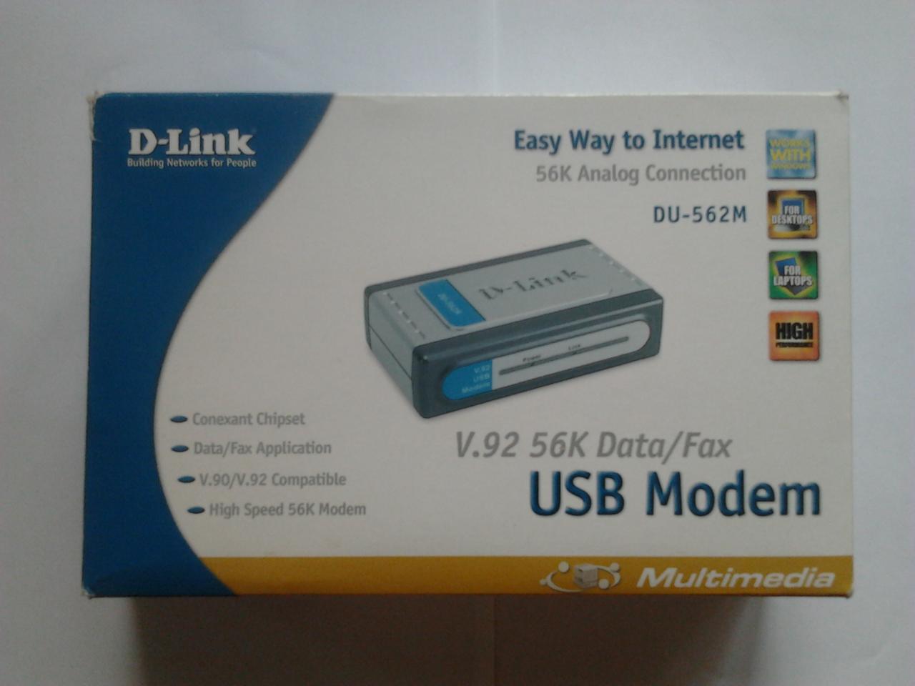 D-Link DU-562M – аналоговый модем V.92/V.90, 56Kбит/с, разработанный для сетей малых офисов и дома. Этот компактный и легкий модем можно подключить к любому телефонному порту для предоставления настольным и портативным компьютерам доступа к Интернет через телефонную линию.