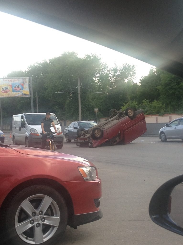 Легковушку не видел возле вокзала: В трамвай въехал троллейбус, а в троллейбус - маршрутка, может легковушка позже появилась... На привокзальной площади при выезде в сторону Пушкинской.