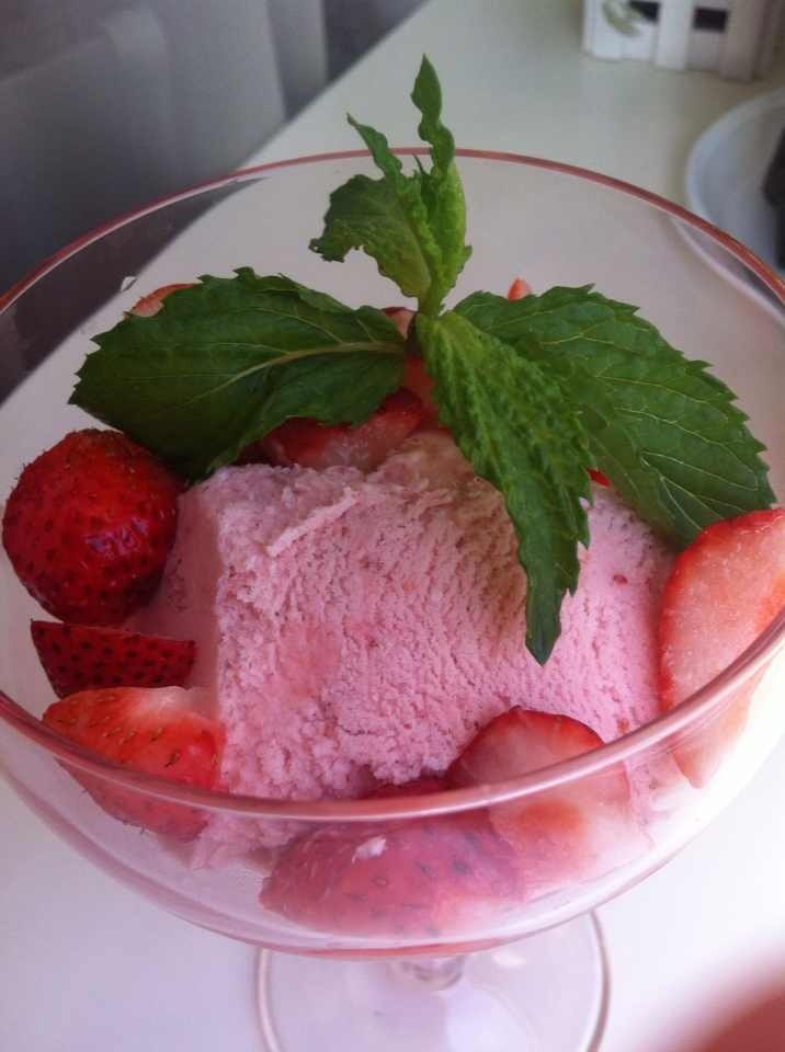 И у нас повтор клубничного мороженого. В этот раз делала с домашними сливками, разбавляла молоком.