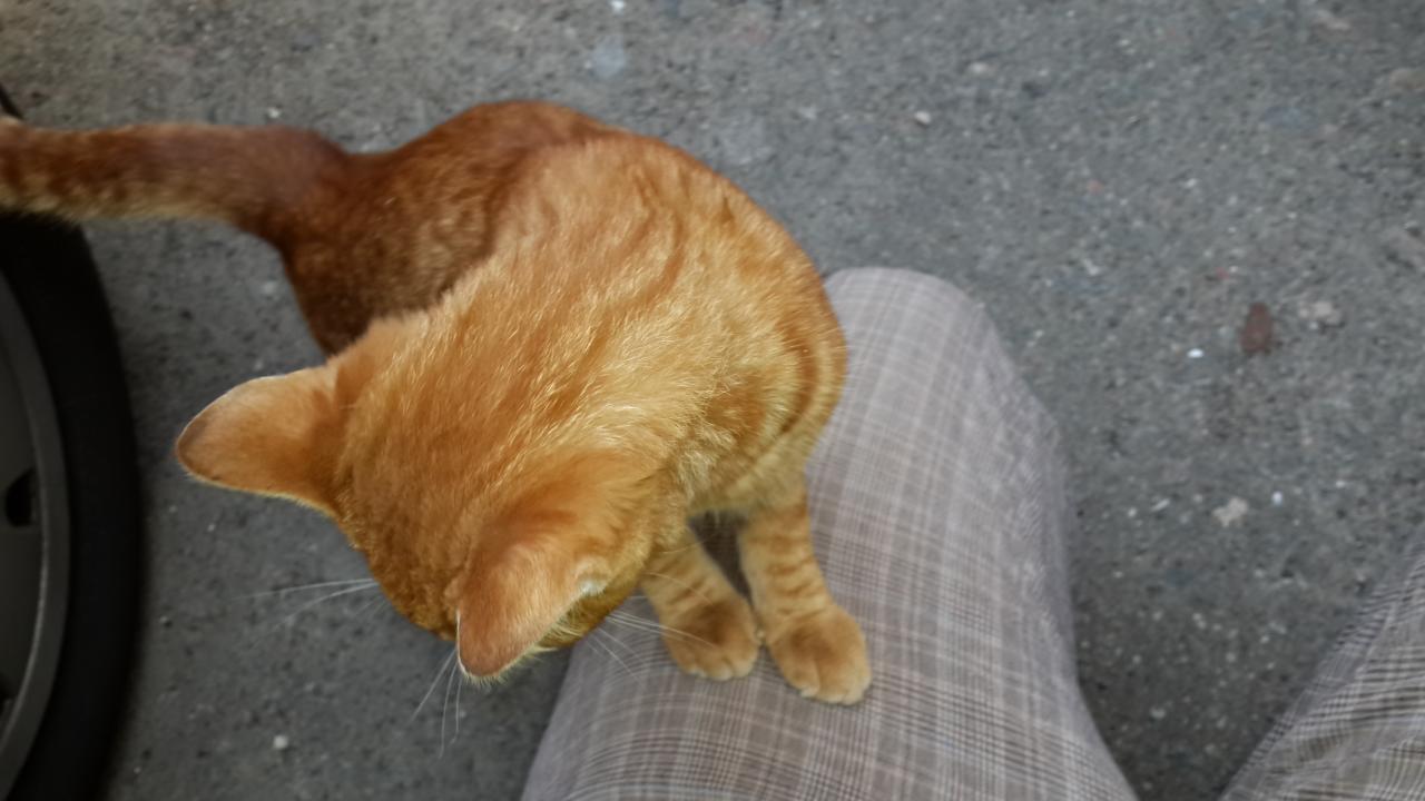 У нас во дворе появился божественно красивый котик темно-рыжего окраса. Судя по зубам и размеру - 6-8 месяцев от роду.