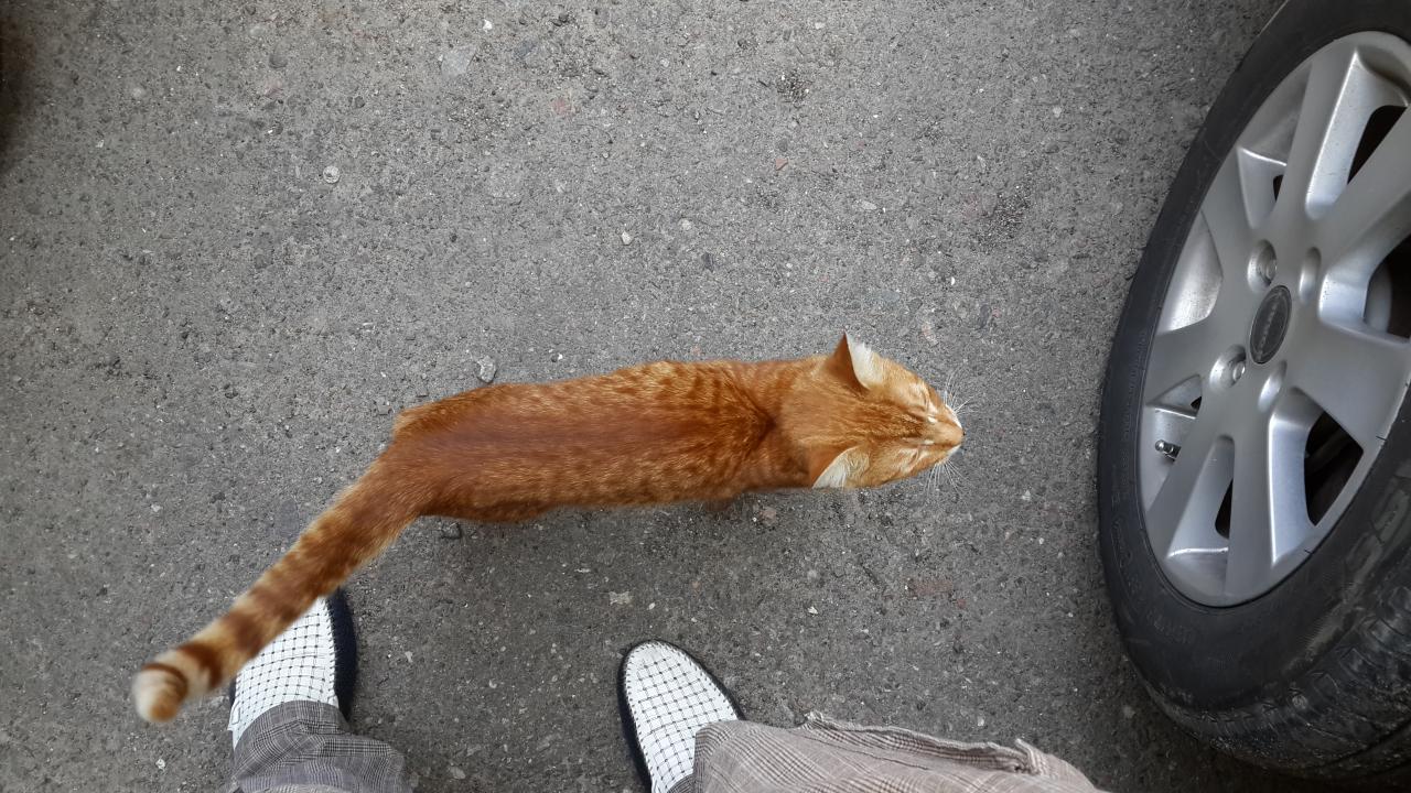 Кот домашний, очень испуганный, просится в парадное и лазает в салон машины.