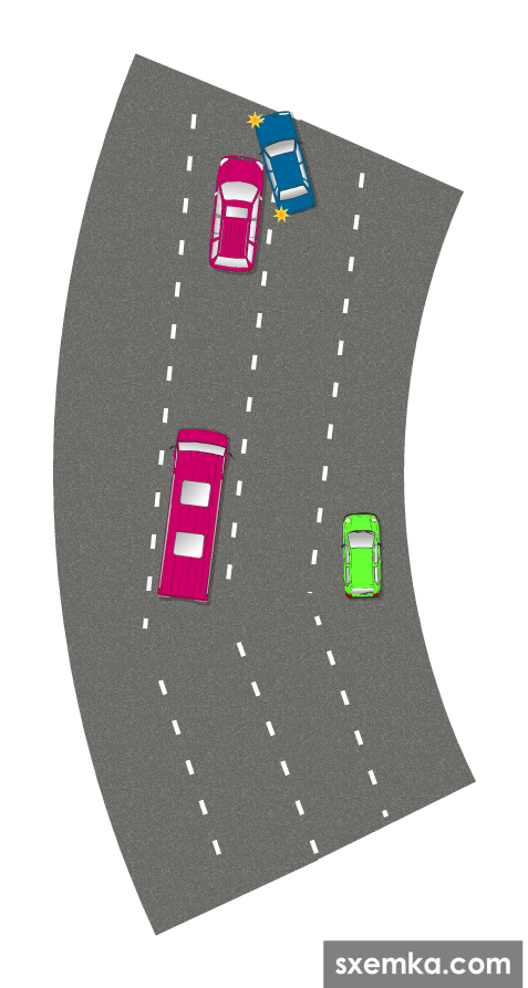 постой, это тебе неясно, проезжая несколько метров от светофора ты попадаешь на перекресток с круговым движением, можешь рисовать любые кривые и как угодно, но ты на кругу в третьем ряду из которого собираешься уйти направо через два других рда, которые едут прямо, какие еще вопросы?представь что ты поворачиваешь из третьего ряда направо на Киевской трассе, эффект тот же, только скорость выше