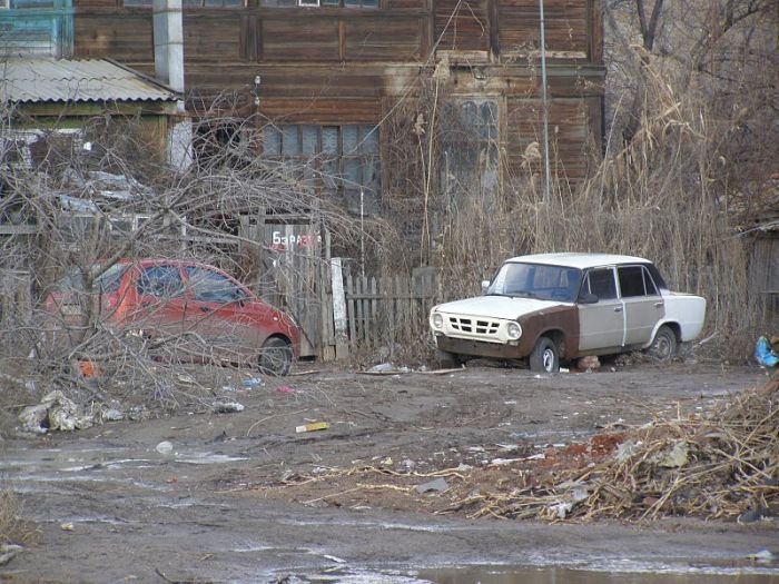 Нормальный район любого города. Снятый после зимы, когда не успели убрать мусор. Почемуто именно тогда есть любители снимать мусор. Обычно к майским праздникам всё убирают. Тогда уж не интересно снимать. Кстати у нас точно такой район в центре города. Дома в 30г построины. И хер кого от туда выгонишь, все ждут холявного жилья по программе переселения ветхого фонда.