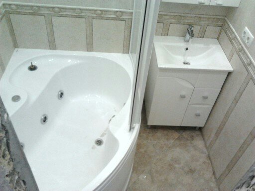 — если ванная комната, в частности пол облицованы плиткой, у вас есть высокая степень уверенности, что вы по неосторожности не зальете соседей (разве, что вода из ванной перельется в коридор).