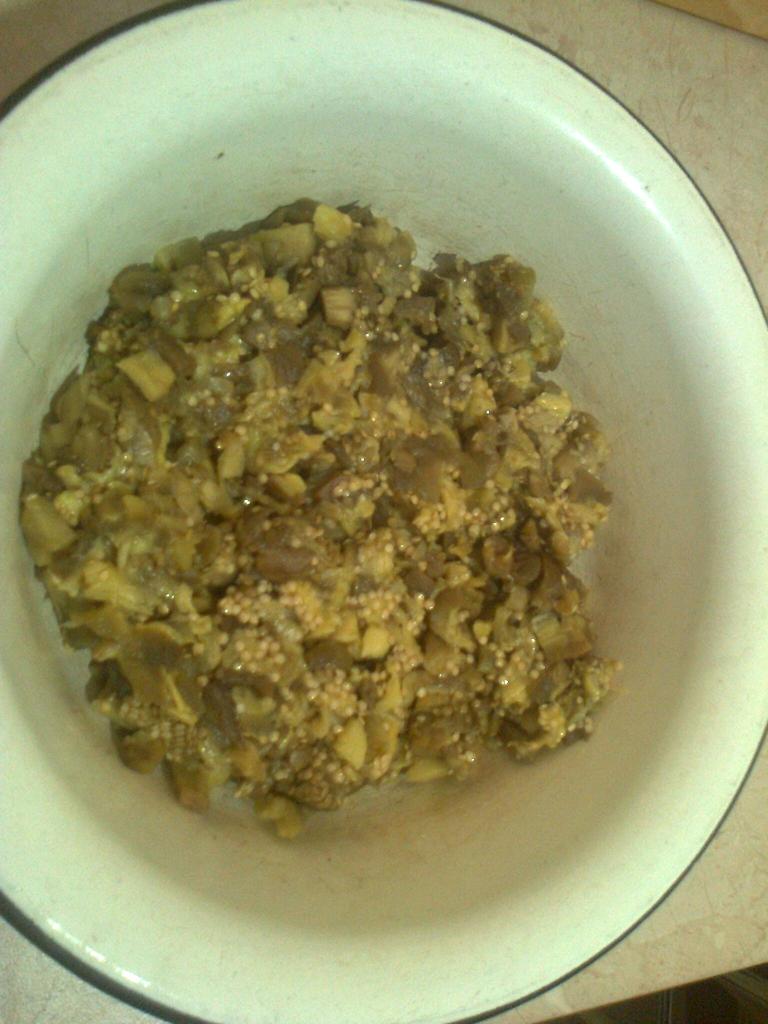 Нюансы приготовления – чистить и отжимать синие нужно сразу после печения, если их оставить надолго нечищенные, сок застывает и плохо отжимается. Чем мельче покрошен лук, тем нежнее вкус икры, идеальный размер где-то 2х2мм, ну 3х3 мм максимум.