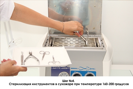 У меня была мастер, которая просто отряхивала инструмент и опрыскивала его спиртом ))