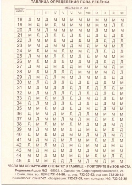 и у меня с первой беременностью по табличке пол совпал))) а сейчас не знаю как считать (точный день зачатия не знаю, если прибавить 2 нед. к ПМ, то получается на стыке -девочка-мальчик (очень-очень хочу мальчика) девочка уже есть))) прикольная табличка