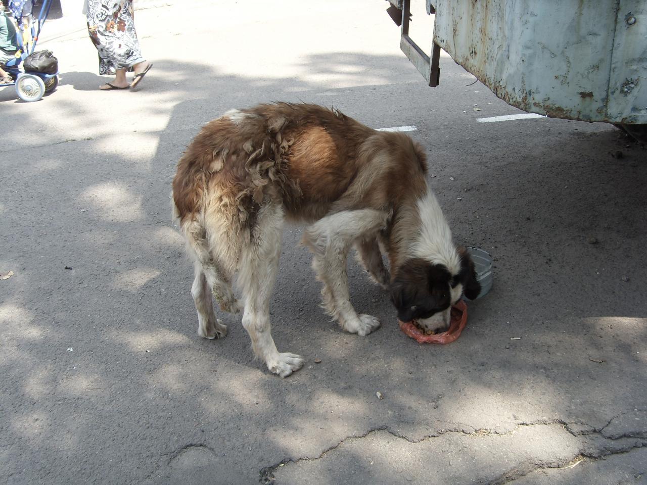 Сегодня ночью прибился сенбернар. лежала возле будки с овощами, но ее прогнали, мол она людей отпугивает и грязи от нее много. водичку ей/ему добрые люди налили, обычную еду есть не захотел/а, корм уплетал с большим удовольствием. очень худая, в плохом состоянии, ходит еле-еле, возможно под машину попала или люди руки приложили. Команды знает, погладиться дается, мальчик/девочка не известно.
