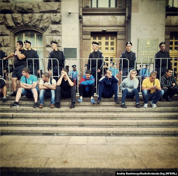 О тех, кто "охранял" Киевсовет от киевлян: милиции в подмогу понадобились спортсмены и согнанные "добровольно-принудительно" бюджетники."Защитники" Киевсовета, несмотря на свою "высокую миссию", почему-то избегали видеосъемки и угрожали работавшим журналистам, в частности, журналисту "Цензор.НЕТ".![]()
