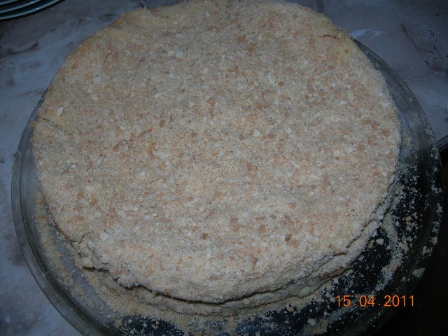 я всегда оставляю крем и на утро опять обмазываю и обсыпаю крошкой с коржей.Нажмите на изображение для увеличения