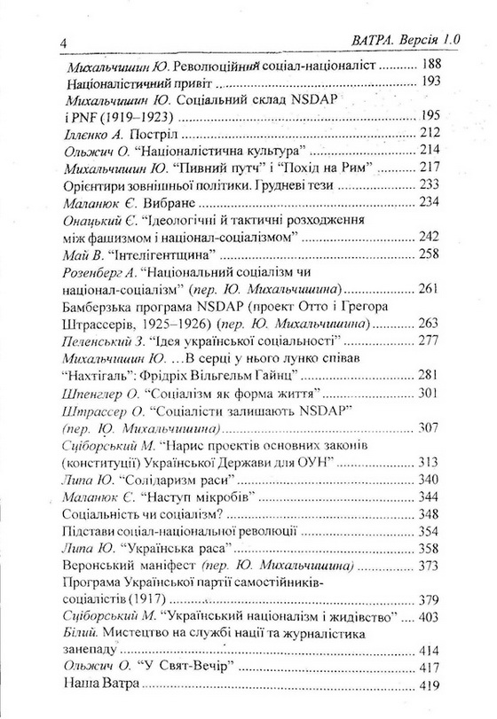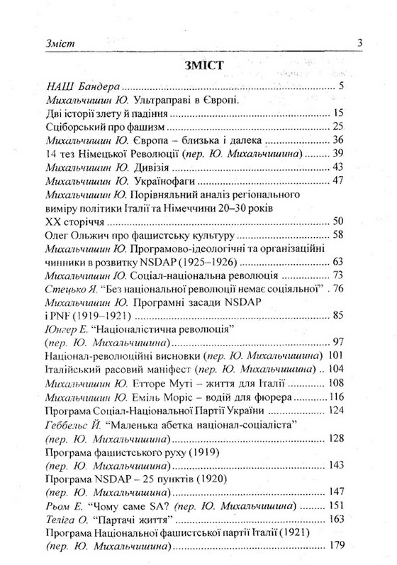 Афтар - один из лидеров сволоты юрчик михальчишин, большой почитатель Геббельса,Рёма и прочей швали..................До збірника увійшли переклади програмових документів європейських політичних партій антисистемного типу міжвоєнної доби, матеріали про їхню практичну діяльність, твори провідних ідеологів українського націоналізму та найяскравіший європейських націонал-революційних інтелектуалів.Більшість оригінальних матеріалів друкуються українською мовою вперше. Ідейно-теоретична спадщина українських та іноземних класиків