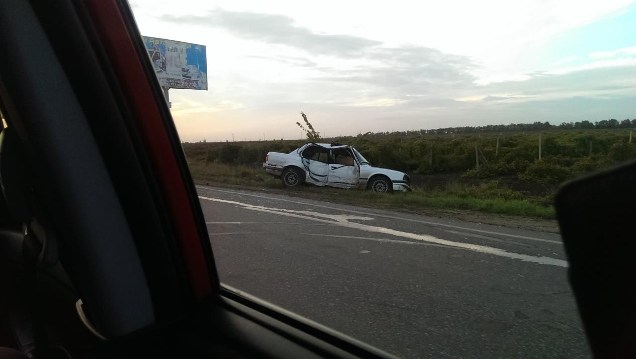Как я понял, судя по разбитому капоту Daеwoo, водитель BMW вылетел на встречную полосу и совершил столкновение с встречной машиной. Видимо удар был косой и скользящий. Водитель BMW вылетел с дороги в кювет.