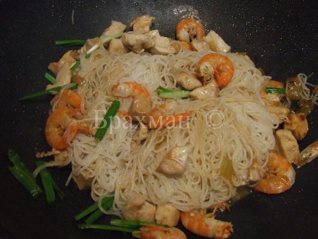 Жареная Рисовая лапша с острыми куриными фрикадельками