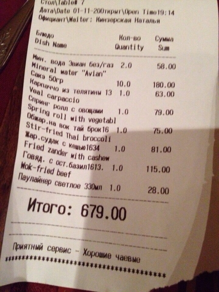 Сяке очень даже приятный и аромат тонкий. Карпаччо - фигня. Тайская кухня - отлично.