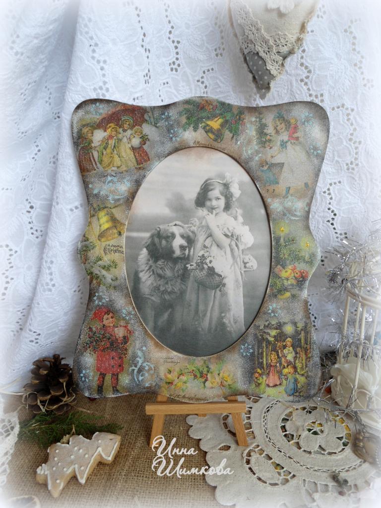"Рождество" винтажная рамка для фото.Фоторамка, стилизованная по мотивам рождественских ретро открыток, украсит Ваш дом и сохранит самые счастливые и весёлые моменты новогодних праздников .Прекрасный вариант для новогоднего подарка.