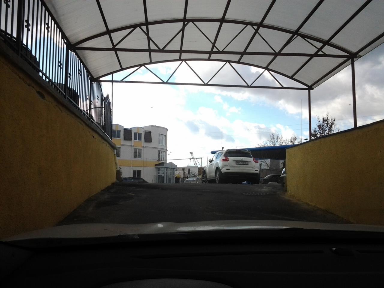 Он относительно подходит... При таком выезде ни водитель машины, выезжающей от подъездов по спуску, ни водитель, выезжающий из паркинга друг друга не видят, я с этим неоднократно сталкивалась, очень аварийноопасно