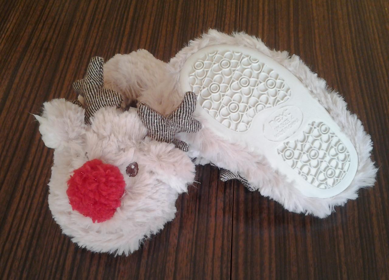 Продам НОВЫЕ домашние тапочки. Фирма NEXT. К сожалению нам не подошел размер. Указывается 20.5 реально на 19.5/20 Очень практичные,подошва резиновая.То что нужно для холодной зимы. Подойдут как мальчику,так и девочке. Цена 118гр.