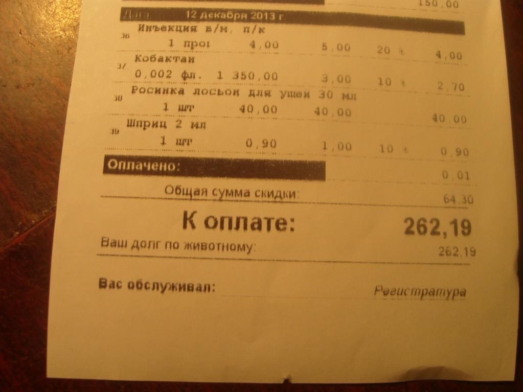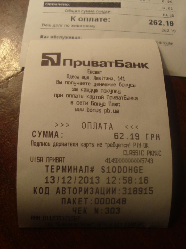 Долг был 262,19 грн, я внесла на счёт котика 62, 19, потом добавилось ещё 17 грн за антибиотик и укол и остался пока долг 217 грн