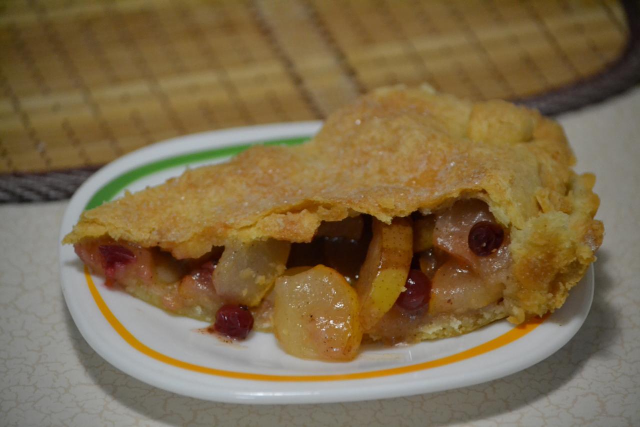 2. Пирог с грушами и клюквой. Невозможно было вытерпеть, пока остынет, резала горячим, он рассыпался. Когда остывает, режется отлично. Но остывший уже не успела сфоткать.