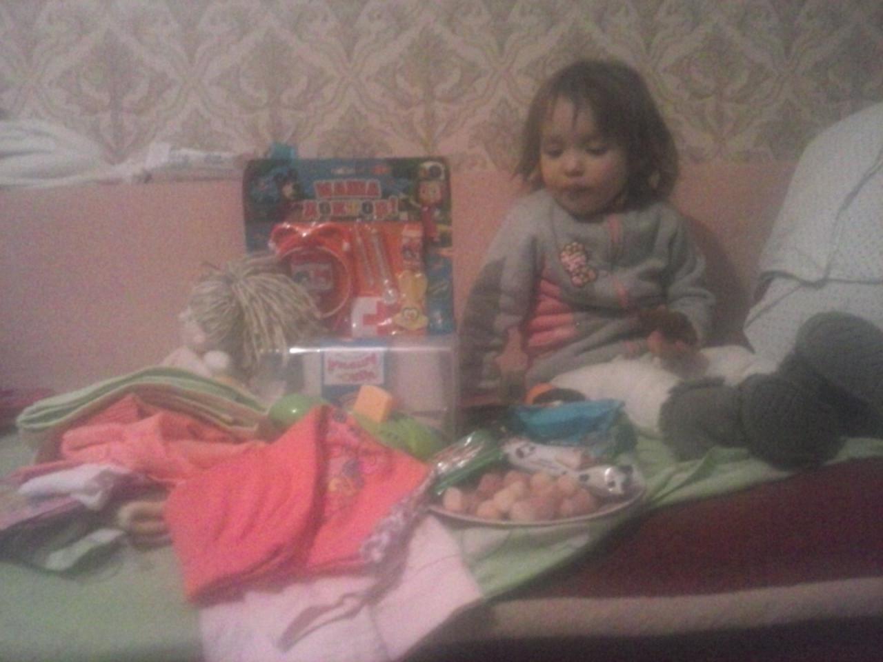 Пришли домой и сразу Кира полезла разбирать мешок подарков,вот какую гору всяких интересностей и нужностей нам подарили...