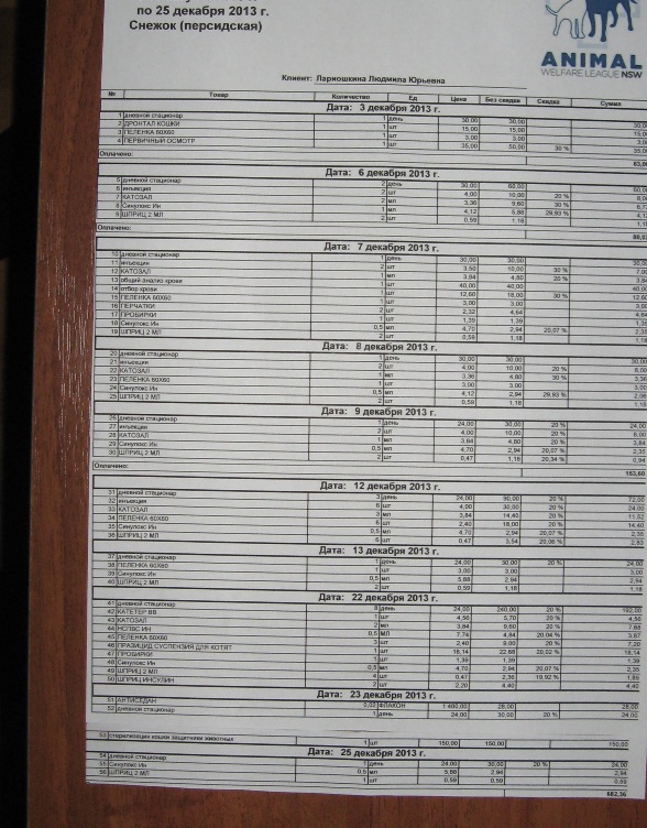 . Характер у неё просто замечательный, она такая аккуратная, деликатная, очень любит ласку, чтоб ей почесали за ушком. В общем это кошечка- мечта. Сейчас я ищу ей хозяев, объявления разместила, но звонков пока нет, а долг в клинике накапливается. Огромное спасибо за скидки, которые нам делают. Передержка в день 25 грн +лечение, стерилизация, еда, наполнитель . Думала справлюсь сама, денег просить не люблю и не умею, но на сегодняшний день долг уже 700 грн и сколько Снежок ещё просидит в клинике не знаю. Долг потихоньку буду погашать, но от помощи не откажусь.Передержку в Ильичевске найти очень тяжело, у меня дома две собаки и два кота, т.е. взять её я не могу. Поэтому решила создать темку, может найдутся желающие помочь этой замечательной малышке. Фото Снежки. Фото чека выложу завтра.Сегодня не успеваю.