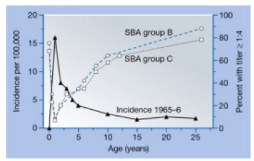 В обсуждаемом случае про менингококковую инфекцию, к сожалению, в патогенезе именно Neisseria meningitidis решающую роль играют сывороточные бактерицидные антитела, если их содержание менее 1:4 то риск заражения менингококком увеличивается. В большинстве случаев в возрасте от 6 мес до 2 лет, содержание этих антител в крови ниже необходимого, т.к. организм в этом возрасте больше приспособлен бороться с вирусами. У некоторых в принципе их недостаток, вызван нарушением в иммунной системе и в случае заражения шансы летального исхода у них максимальны.