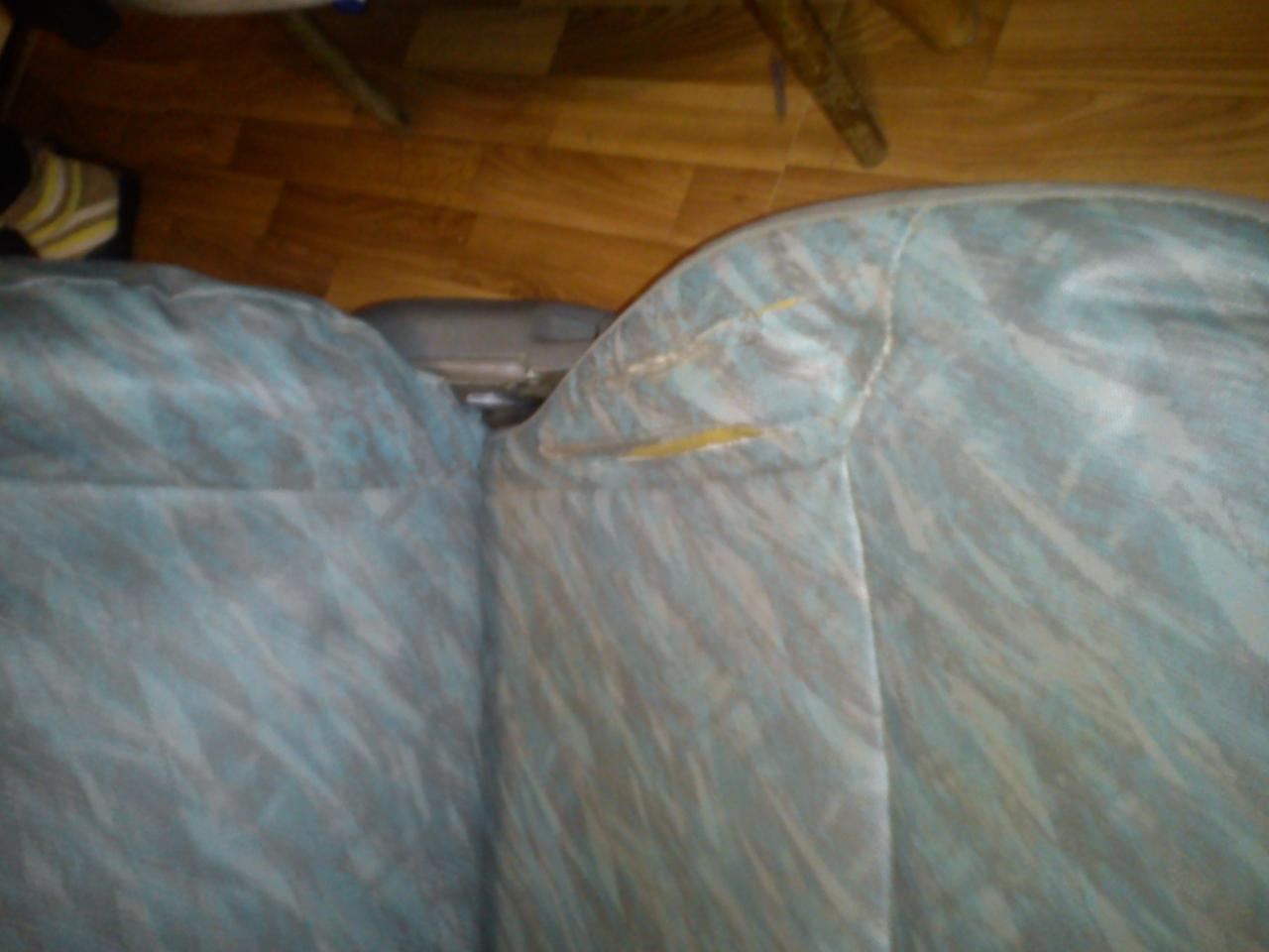 На одном есть 2 небольших пореза. Заднее не сфоткали - оно без повреждений, с такой же оббивкой. Ткань моющаяся.