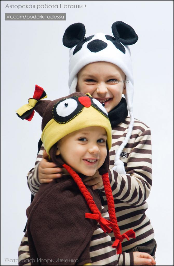 Оригинальные забавные шапочки-зверюшки с шарфиками для непосед от 2-х до 6-и лет.Из мягкого флиса. Готовые и под заказ. Ручная работа. Стоимость: 170 грн. Заказ по тел. (048) 702-82-13, (067) 436-62-07