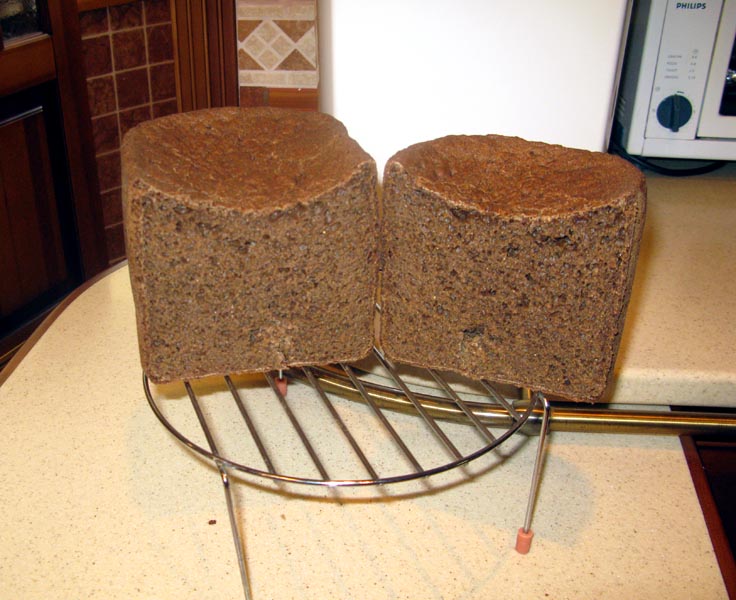 Еще рекомендации автора рецепта с хлебопечки.ру: "Особенности по сравнению с белым - тесто приходится делать круче, чем для белого хлеба, иначе при невозможности регулировать температуру выпечки верхушка чуть просядет.