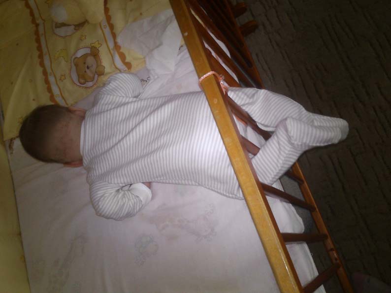 а Машка же дома вообще не спит, и кроватка у нас для игр, так она когда под мобилем играется 0 вертится вокруг себя в той кроватке...и если что, пищит...типа, мама - иди меня распутай)))