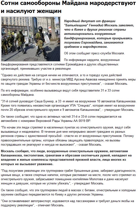 В ночь на 1 марта неизвестными вооруженными людьми, направленными из Киева, была предпринята попытка захвата здания Министерства внутренних дел Автономной Республики Крым. В результате вероломной провокации имеются пострадавшие. Благодаря решительным действиям отрядов самообороны попытку захвата здания МВД удалось предотвратить. Последнее подтверждает стремление известных политических кругов в Киеве дестабилизировать ситуацию на полуострове.