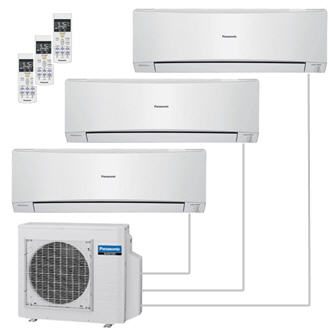 Мульти сплит системы являются разновидностью сплит систем. Их отличие том, что к одному внешнему блоку подключается не один, а несколько внутренних блоков — обычно от 2 до 4 — 5 штук. При этом внутренние блоки могут быть не только разной мощности (обычно от 2 до 5 кВт), но и разных типов. Такое конструктивное решение позволяет экономить место на наружной стене здания и не так сильно портить внешний вид наружными блоками. При этом, вопреки распространенному мнению, замена нескольких сплит систем на одну мульти сплит систему не приводит к выигрышу в цене, поскольку стоимость оборудования примерно такая же, а трудоемкость и стоимость монтажа в 1,5 — 2 раза выше из-за более длинных коммуникаций. Кроме этого, при выходе из строя внешнего блока мульти сплит-системы перестают работать все внутренние блоки. Поэтому мульти сплит системы обычно используют только при невозможности размещения нескольких внешних блоков на наружной стене здания.