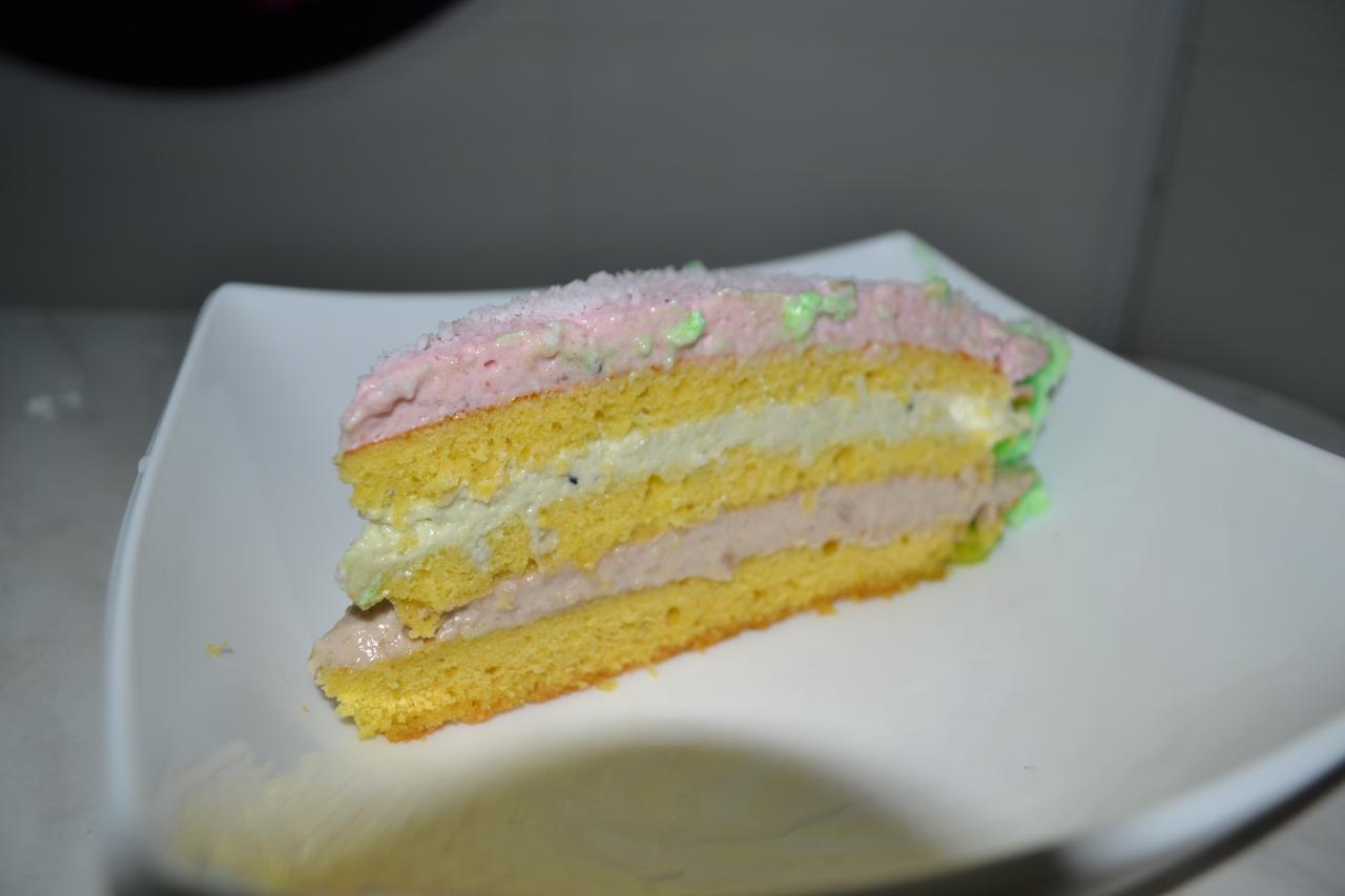 прослойка из трёх вкусов: банан,киви и клубника, муж настоял на белковом контуре)))