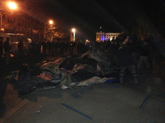 По его словам, пожар потушили. Потушили также и костер из покрышек, который можно было наблюдать у входа в обладминистрацию еще десять минут назад.