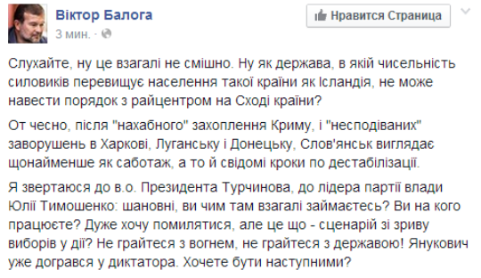 "Леонид Перебийнис - мэр Красного Лимана рассказал мне, что передовой отряд сепаратистов действительно прибыл в город на разведку, но община - и лесники, и казаки, и активисты, и партийцы - вышли на улицы и стали на защиту милиции. Это заставило сепаратистов убежать", - написал он.