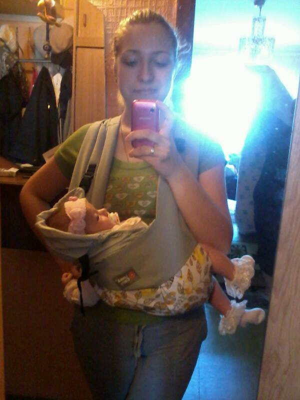 она бушует пока я завязываю ее в слинг,а потом как мышка лежит)))