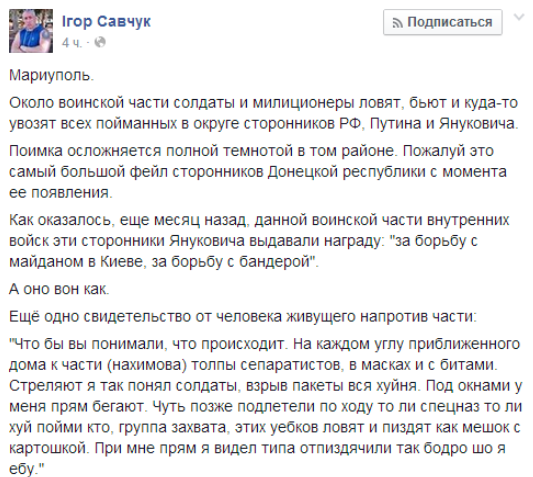Ви тепер розумієте, чому знищено контрснайперські комплекси, аеророзвідку? Чому розформовано танкову бригаду в Овручі й відведено війська? Вам ясно, чому розміновано всі мости, дороги, лінію розмежування та Чонгар?