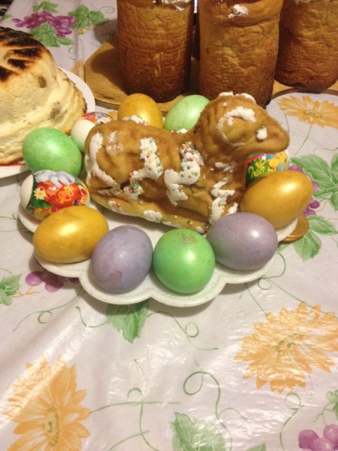 Пасочки святили домашние, одну я сама спекла в хлебопечкой по рецепту Иры(одесса-Ира), вышло ну. Оооочень вкусно! И еще парочку мне мама своих принесла. Сейчас доця проснется и поедем к бабушке в гости! Как я люблю этот праздник!!
