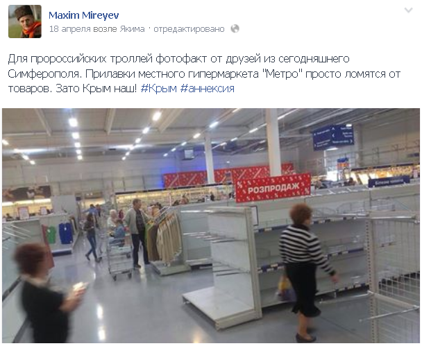 "Метро" не может работать в Крыму из-за международных санкций ,так что распродаются