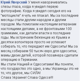 Из группы в ВК по поводу этого ветерана: Ребята, встретила сегодня на улице нашего дорогого ветерана. Но он был без коляски, со своим старым приспособлением. Я подошла узнать, почему. Оказывается, подаренная коляска тяжелая и поднимать-опускать ее у него просто нет возможности. Я прошу всех неравнодушных парней, мужчин как-то связаться с ним и по возможности помогать ему с этим... Мы ведь не покинем его в беде, верно?