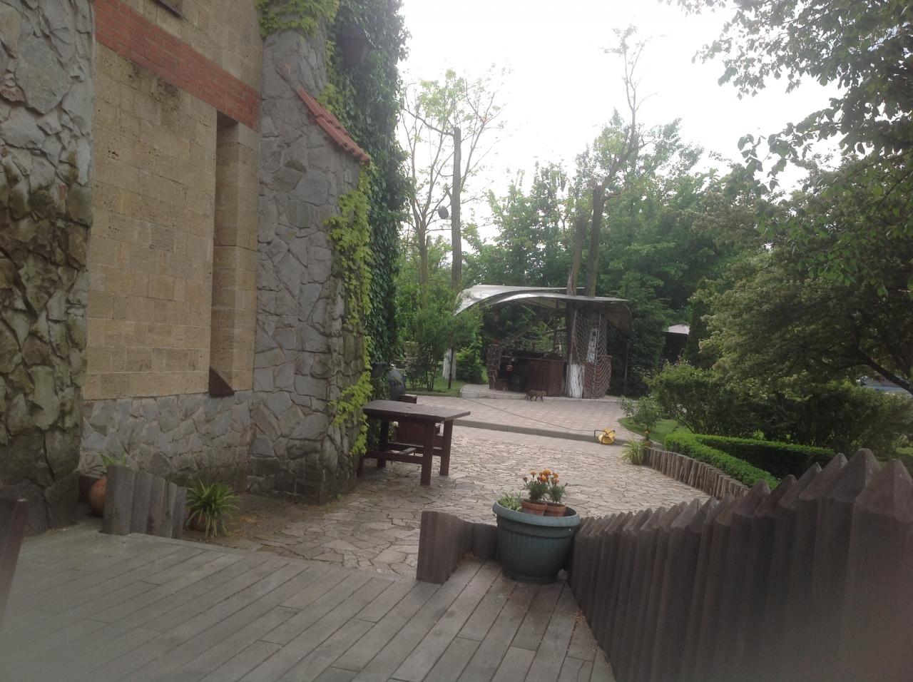 Просто мимо ехали с мужем,решили попить чайку,кофейку,поболтать без детей на голове...ну,собственно и всё) поболтали)подышали воздушком)послушали кваканье жабок)посмотрели на рыбок в пруду)есть прямо косяки рыб,кстати)уточки плавают)...хорошо))) За это "хорошо" можно даже и заплатить)Та и пообедать уже) Не скажу,что плохо...но и не ах) Морс! Морс очччень хорош!!! Тут высшая оценка! Тут покорили! Вот как должен быть)настоящий морс) А всё остальное:ну такое) Я люблю этот замок просто как строение)хорошая идея)...ну добавьте мелочей!!!...я мысленно сервировала стол вот той тарелочкой которую там то видела)вот тем то стаканчиком,той то вилочкой и той то чашечкой)-из своей памяти)...и старалась не замечать этой дешевизны "а ля мылка 7-й км и Метро"...на фоне идеи и этого замка...мелочами ведь иногда можно сделать так АХ!))) чтобы потом ещё и ещё поехать ахнуть)...всё хорошо,но я пока воздержусь...я не напиталась полностью атмосферой) а мне иногда надо)просто так) не тупо покушать)...жаль что всё так...вроде бы всё как везде...но не ах...
