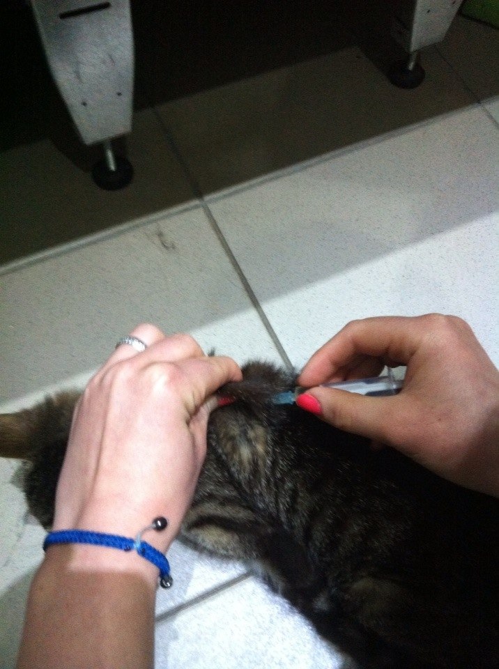 Но буквально с месяц назад, съезжают ещё одни.... И в коридоре мечется абсолютно перепуганное , шугающаяся каждого звука существо. Тогда мне показалось, что это котенок месяцев 3-х. Начала по тихоньку подкармливать. Через неделю она начала подходить уже к руке. Через 2 дала себя гладить, на третьей неделе я взяла её на руки. И тогда я нащупала какие-то уплотнения на груди... Особого внимания не предала, но вот проходит неделя, девочка становится похожа на шарик....Полностью опухли все молочные железы...Понимая, что тянуть дальше некуда, несу её в клинику. Ей поставили диагноз "ювенильная гиперплазия молочных желёз" и лечение. А вот лечение, к сожалению я не потяну... Народ, прошу у вас помощи!