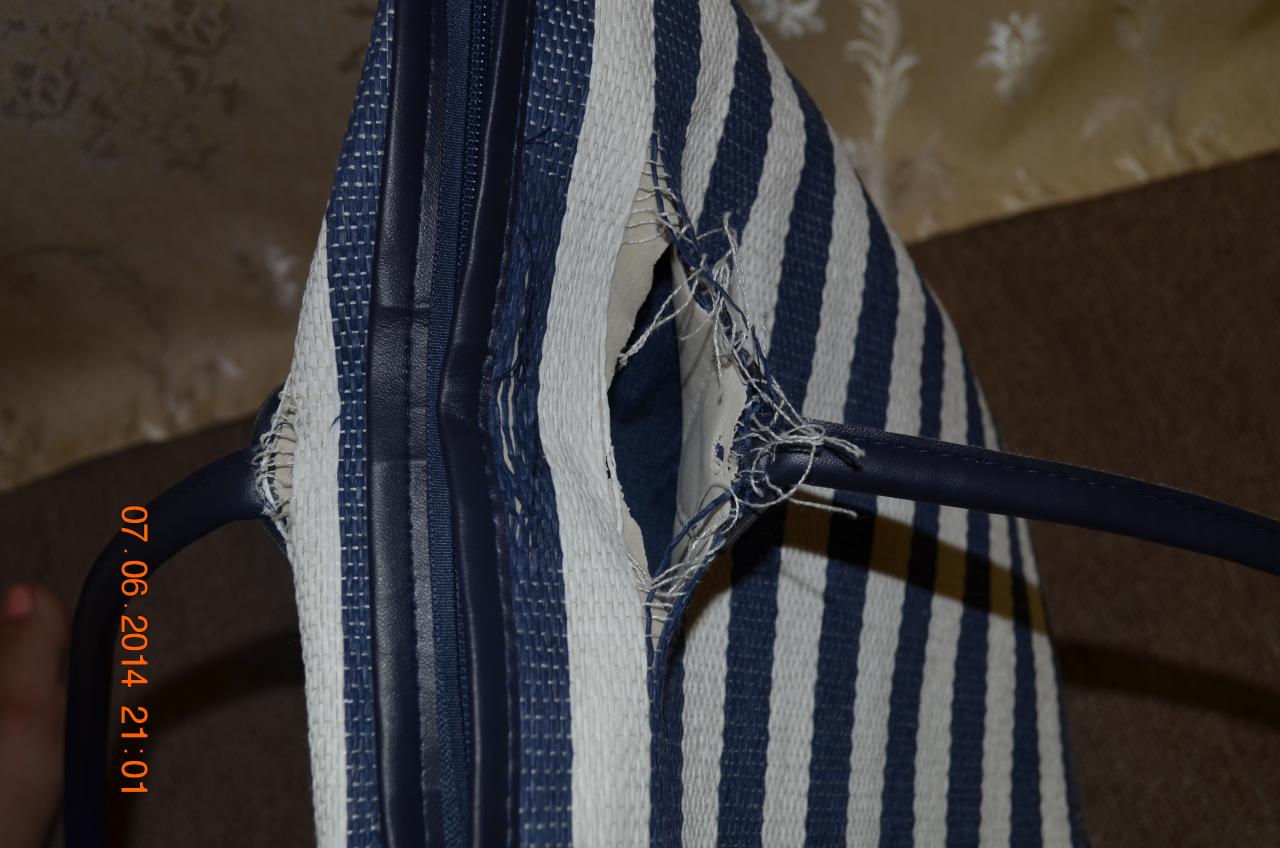 Ничего себе Вам не повезло вроде и не самая дешевая. Я еще в прошлом году с триалопта брала типа такой: только расцветка другая около 20 грн что-то и до сих пор жива. Правда ничего особо тяжелого в ней не ношу, так - полотенце, покрывало да бутылка воды 1л.