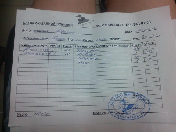В клинике заплатили 112, купили лекарств и шприцов на 40 и отправили на передержку. Так же купила песочек и корма на первые дни на 30 грн.