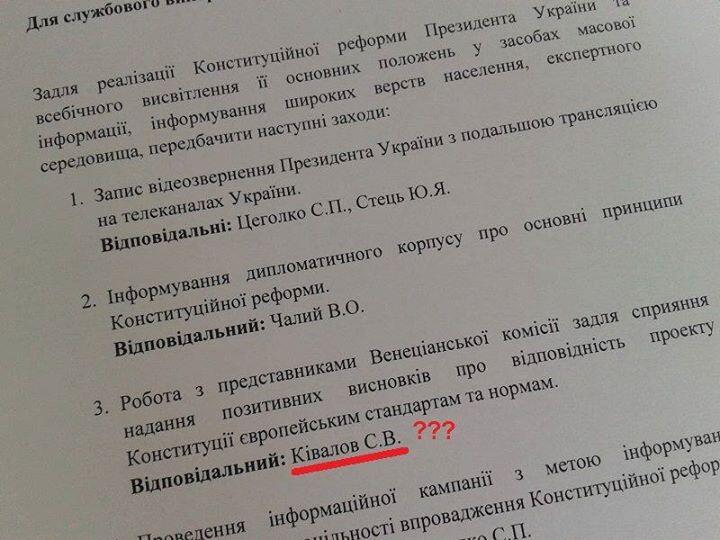 Порошенко призначив Ківалова відповідальним за узгодження змін до Конституції з представниками Венеціанської комісії.