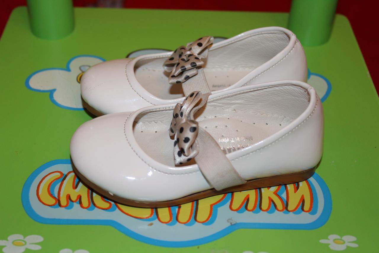 Белые лаковые туфельки с бантиком, размер 22, по стельке 14 см. Цена 150 грн.