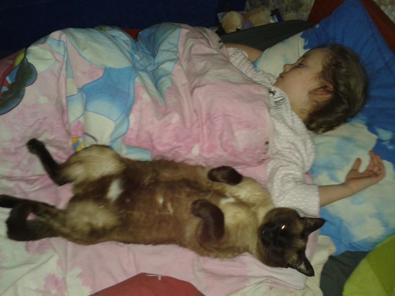 У нас кот тоже подурел немного - это мягко сказано((( Брала для детей. как самого разрекламированого "детского" кота - Тайский. Он таки да, очень их любит, спит только на ножках у малой ( фотку покажу), но когда они начинают ссориться или я кого-то из наказываю, то он кидается и кусает-царапает именно того, кто орет из них, а потом уже меня. Муж его просто сам боится, прогрыз ему ногу и шрамы остались. И вот муж уходит в рейс и у кота видимо снесло от жары и гормонов башню ( он был не кастрированный, мне все жалко было, не метил, не выл - жалко было мучать), Алиска меня доводит чем-то, я ей по попе шлепаю, она начинает выть и закатывать истерику очень громко, кот кинулся на нее и цапнул за руку, я успела вовремя оттащить, не сильно ей досталось, он забивается под диван и сидит там. Она, ессно, воет еще сильнее, я ее уже успокаиваю. Говорю коту, только вылези, падлюка, придушу.и тут эта гадина кидается из под-дивана и просто раздирает мне ногу и руку. У него клыки по 1.5 см честно. Я вся в крови, прокусанная и подранная. На след день надо было в город по делам и потом у малой днюха. В общем раны замазала зеленочкой и решила пройдут, после двух дней все сверху затянулось, а изнутри в ноге просто начало выгнивать, пошла к врачу - вырезали в глубину 3 см и в ширину 1.5 см дырку, и это за 3 дня всего прошло времени, я реально не шучу((( Представляете эту красу, да еще и летом(((((( Кот попал, отвезла его в ветеринарку к проверенному доктору Непейводе, говорю, что с ним делать, дети любят - отдавать не дадут, выставить куда-то жалко, да и кто захочет дикаря брать, на улице собаки порвут, домашний все-таки....в общем проблемка...решили мы его кастрировать, подпилили клыки и сделали " мягкие лапки", я сопротивлялась, негуманно и жалко его, насмотрелась фоток, как это делают, но он делает эту процедуру каким-то особым методом, два врача в городе так удаляют когти. Все подушки на месте, фаланги тоже, ноготки просто как-то выворачиваются и лапка целая, только без них. 4 дня и кот,как новый)))Конечно наносилась я с ним эти дни, как с дитем малым, носила на руках есть, потом на кровать спать, потом лапки пленкой затянуть и в туалет)))))Такая душка теперь, не кусается, не царапается, ко всем ластится)))))))) Зато у меня еще даже до половины рана не зажила(((( Это муж не видел, по телефону только знает, сказал - это ты такая жалостливая, я б ему "скоростной лифт" устроил с 8 этажа))))