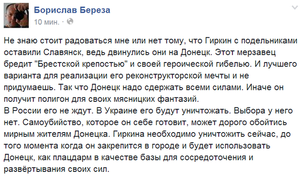 Первое интервью Стрелкова после прорыва из-под Славянска http://lifenews.ru/news/136068 гуманист блин....